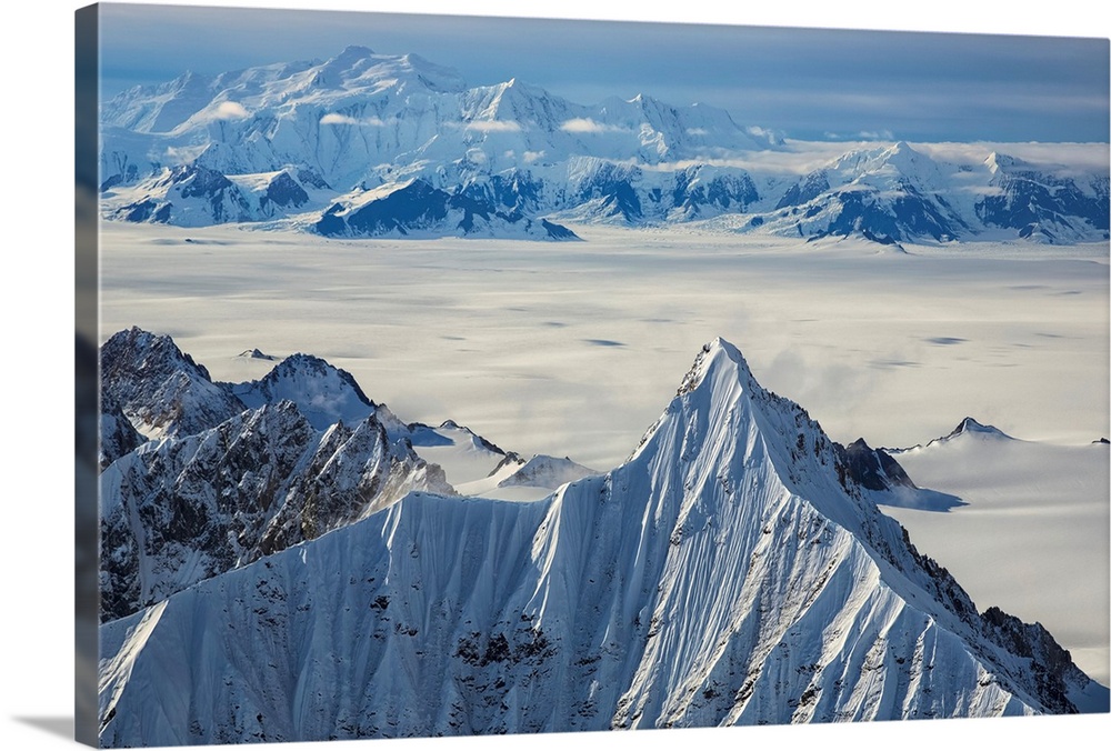 <p>Aerial view of the mountains and icefields in Kluane National Park. Yukon, Canada.</p>