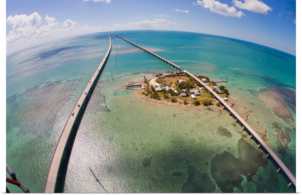 <p>Aerial view of the Seven Mile Bridge near Marathon Island in the Florida Keys.</p>
