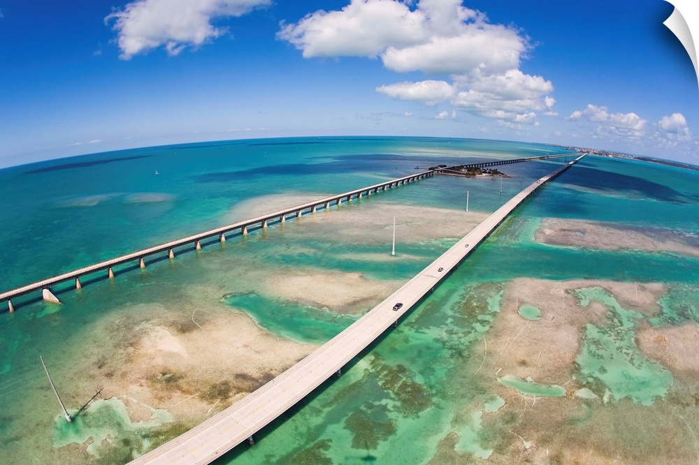 <p>Aerial view of the Seven Mile Bridge near Marathon Island in the Florida Keys.</p>