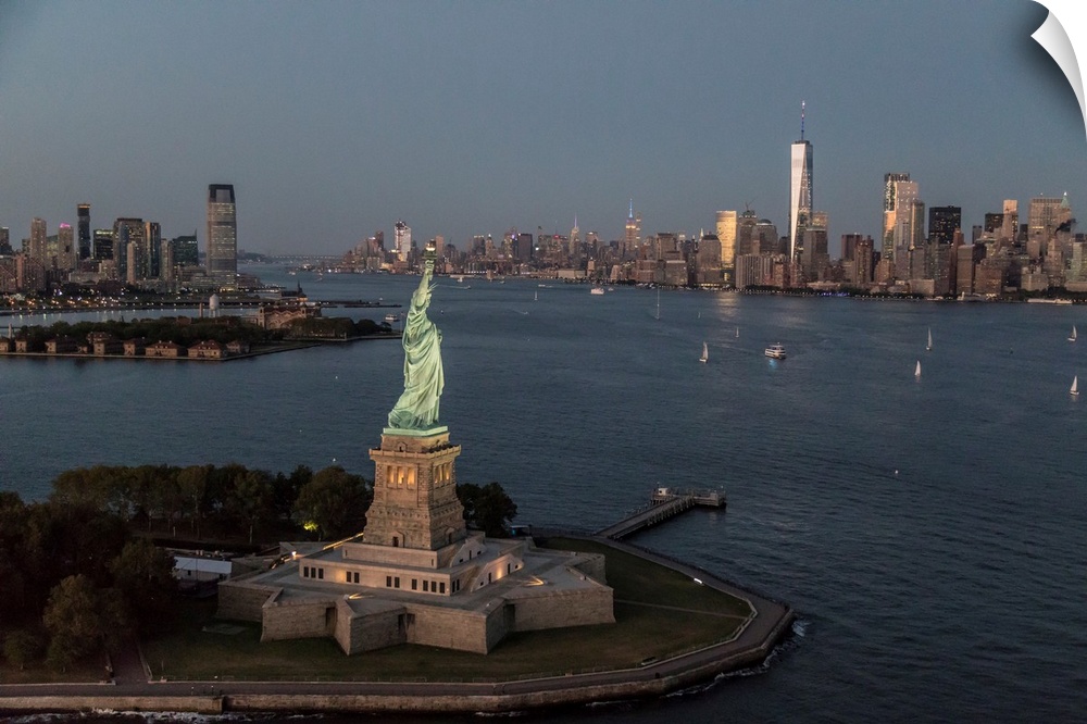 <p>Aerial view of the Statue of Liberty and New York City</p>