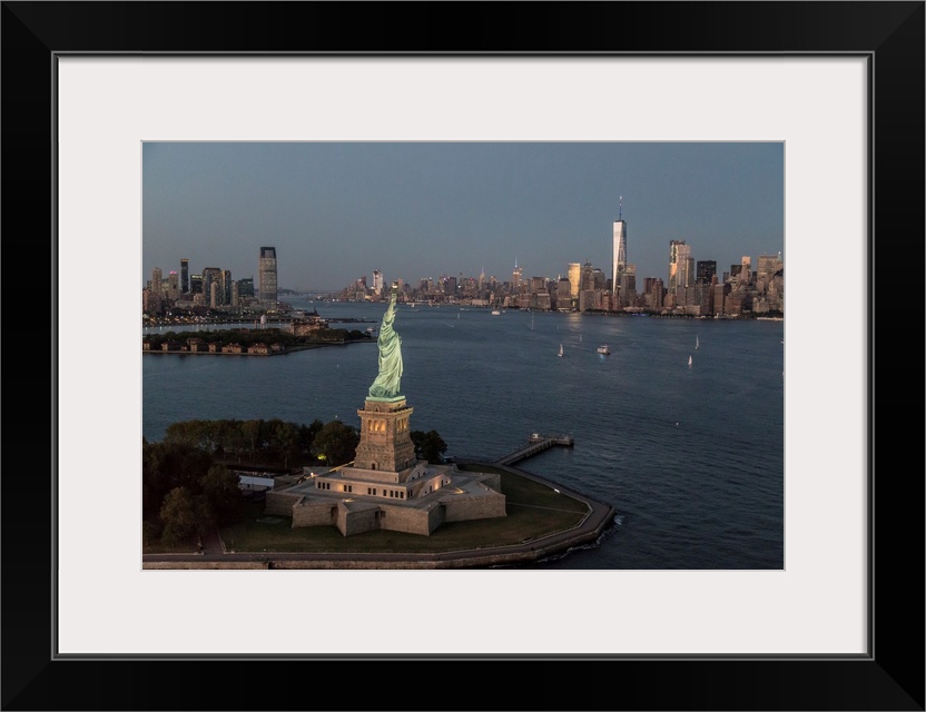 <p>Aerial view of the Statue of Liberty and New York City</p>