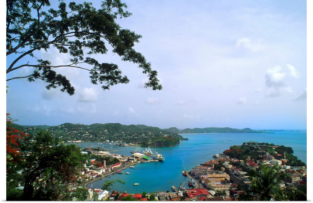 <p>Aerial from mountain of St Georges in Grenada Caribbean.</p>