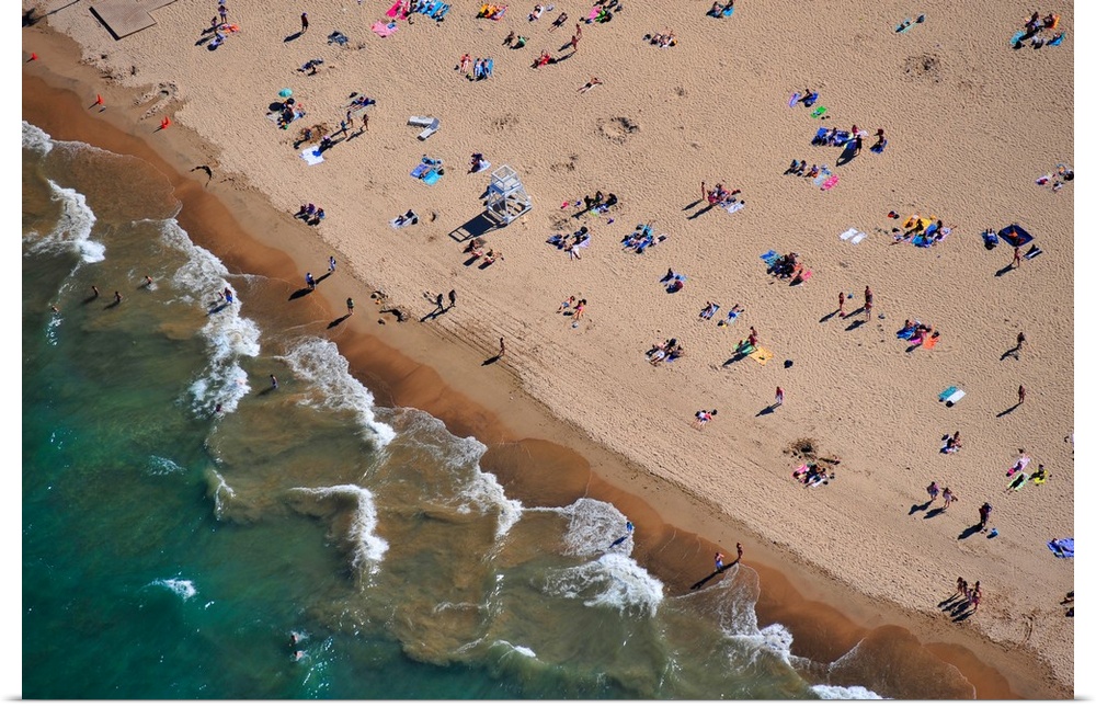 <p>Aerial view of tourists on beach, North Avenue Beach, Chicago, Illinois, USA</p>