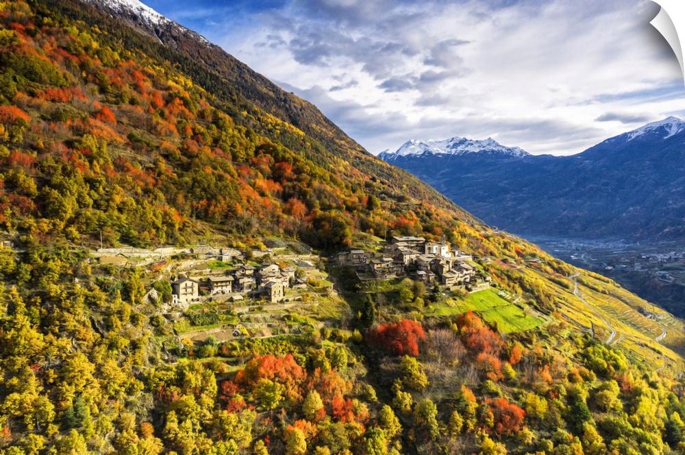 <p>Aerial view of traditional village, Valtellina, Lombardy, Italy, Europe</p>