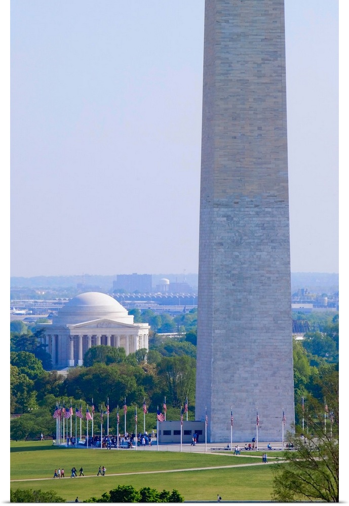 <p>Aerial view of Washington Monument and Jefferson Memorial in spring in Washington D.C.</p>