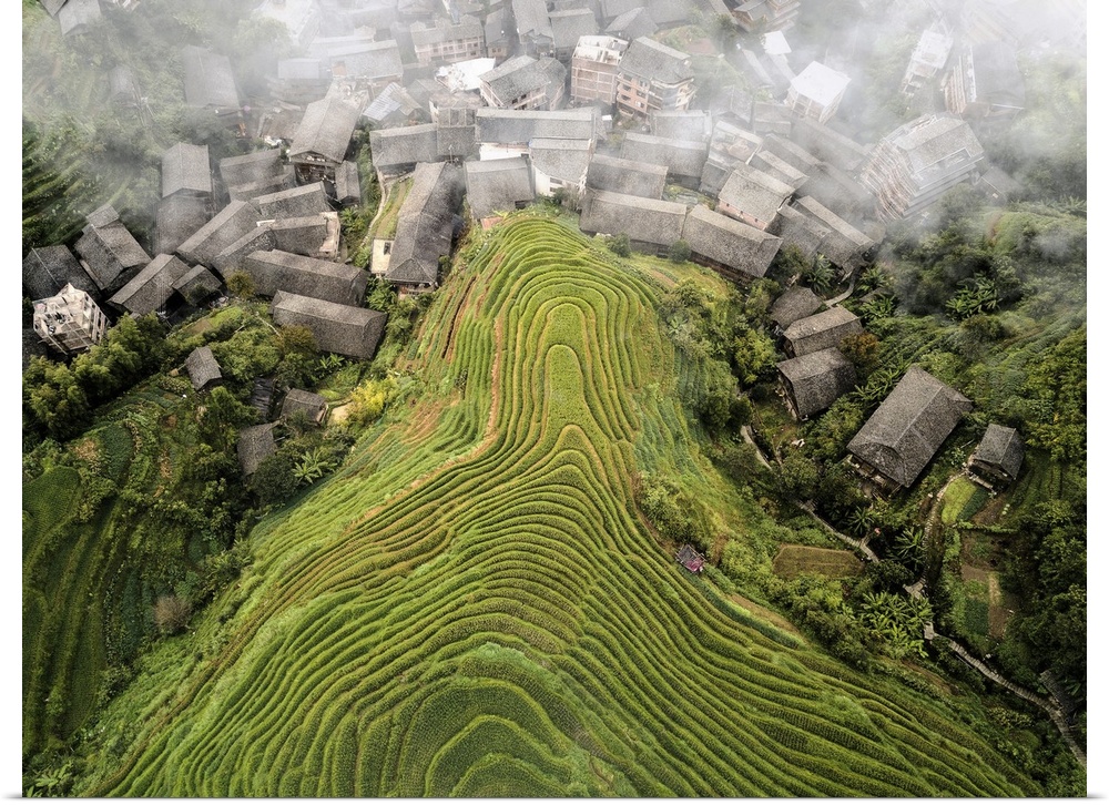 <p>Aerial view on Longsheng rice terraces, also known as dragon's backbone due to their shape, Guangxi, China, Asia</p>