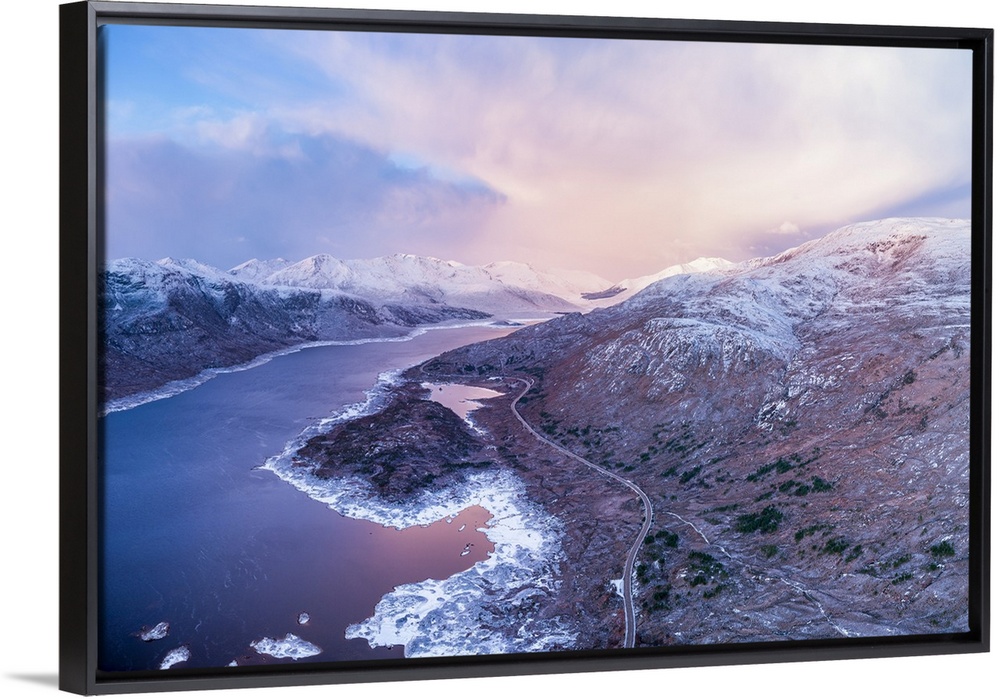 <p>Aerial view over Loch Cuaich along the north coast 500 driving route, A87 between Fort William and the Isle of Skye. Sutherland, Highlands, Scotland, United Kingdom</p>