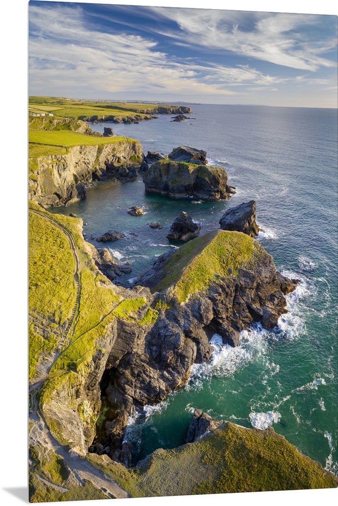 <p>Aerial vista of dramatic coastline near Porthcothan, North Cornwall, England. Summer (July) 2020.</p>