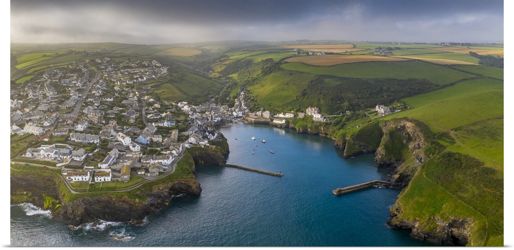 <p>Aerial vista of Port Isaac on the North coast of Cornwall, England. Summer (August) 2020.</p>