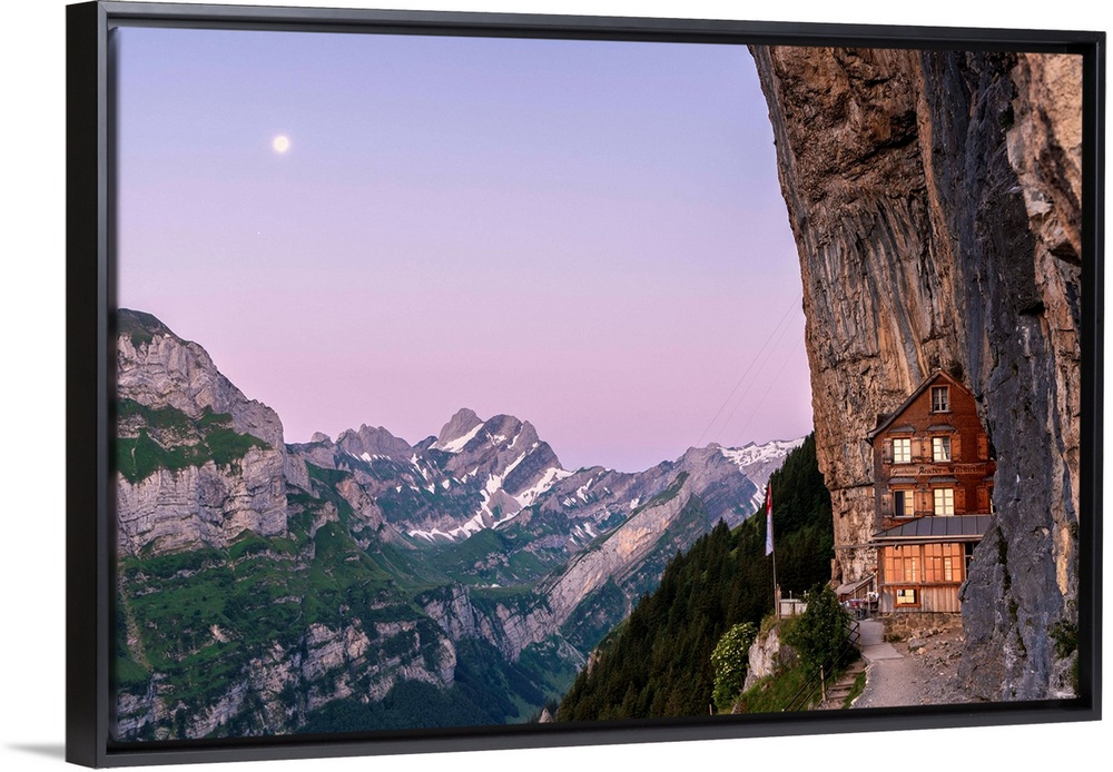 <p>Aescher-Wildkirchli Gasthaus at dusk, Ebenalp, Appenzell Innerrhoden, Switzerland.</p>