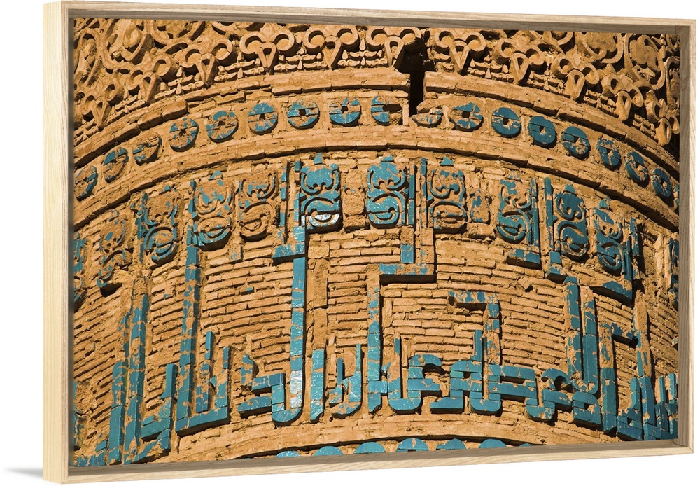<p>AFGHANISTAN, Ghor Province, 12th Century Minaret of Jam, Detail of decoration on minaret including Kufic inscription in turquoise glazed tiles..Discovered by archaeologists in 1957 but was its first sighting was announced by the Governer of Herat in 1943. An inscription round the Minaret confirms it was built by the Ghurid ruler Sultan Ghiyath ad-Din in the year 590 Hejira, (1193-3 CE - Pinder-Wilson 2001) Has Kufic script and verses of the Koran on the exterior and inside is a double-spiral staircase. At 65 metres high it is the second highest minaret in the world (after Qutb Minar in Delhi) Situated at the confluence of the Hari Rud and Jam Rud rivers in an isolated valley renown for Bandits, became a World Heritage site in 2002, Scholars generally agree that Jam is ancient Firuzkuh, the summer capital of thee Ghurid empire</p>