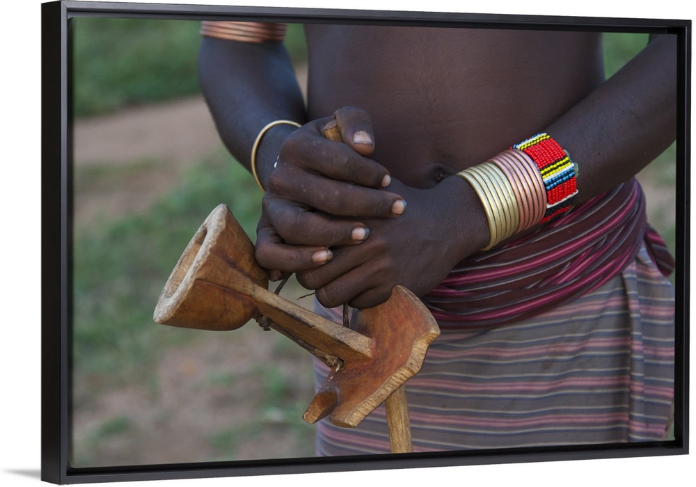 <p>Africa, Ethiopia, Omo River Valley, South Omo, Hamer tribe. Hamer man with his traditional stool.</p>