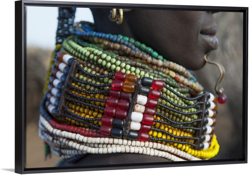 <p>Africa, Ethiopia, Southern Omo Valley, Nyangaton Tribe. Detail of a Nyangton woman's heavy bead necklace.</p>