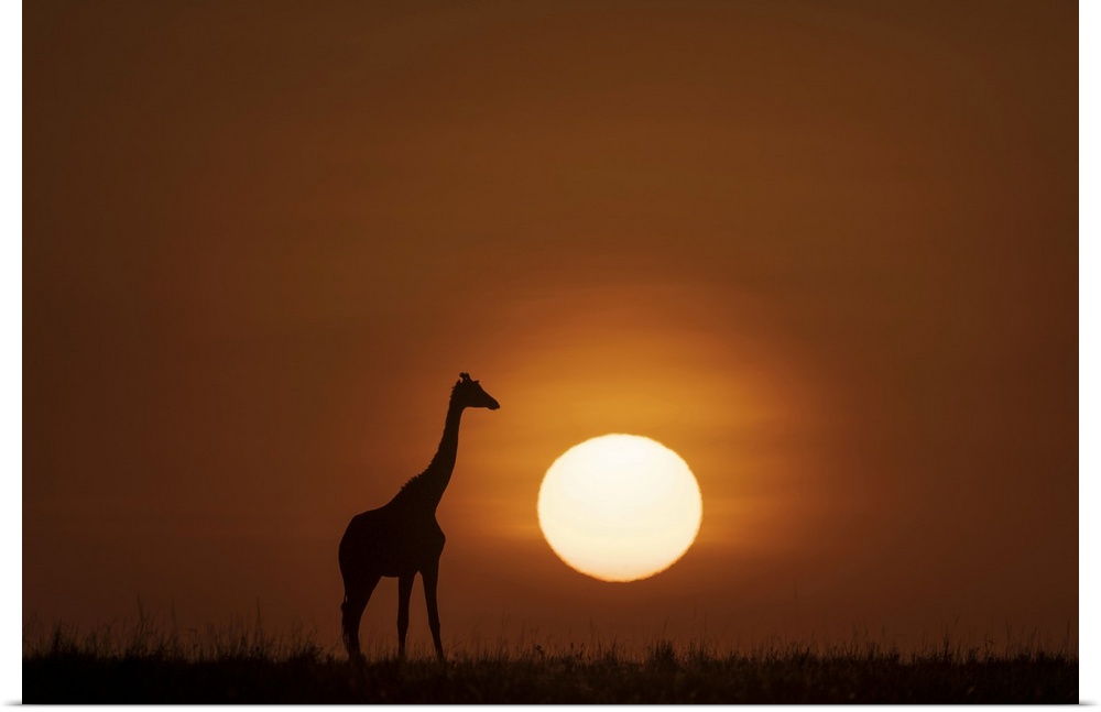 <p>Africa, Kenya, Maasai Mara National Reserve. Silhouette of giraffe at sunset.</p>