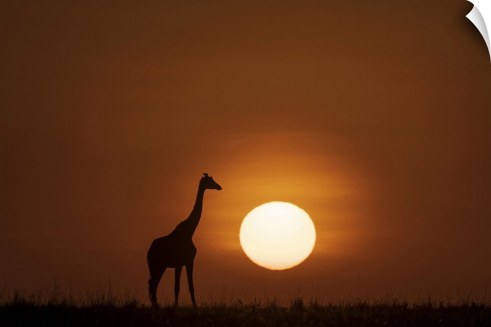 <p>Africa, Kenya, Maasai Mara National Reserve. Silhouette of giraffe at sunset.</p>