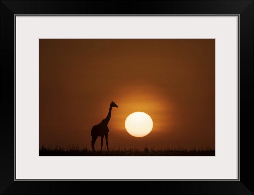 <p>Africa, Kenya, Maasai Mara National Reserve. Silhouette of giraffe at sunset.</p>