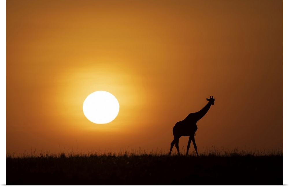 <p>Africa, Kenya, Maasai Mara National Reserve. Silhouette of giraffe at sunset.</p>