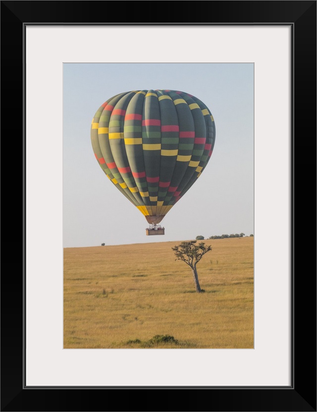<p>Africa, Kenya, Masai Mara National Reserve. Hot air balloon over savannah.</p>