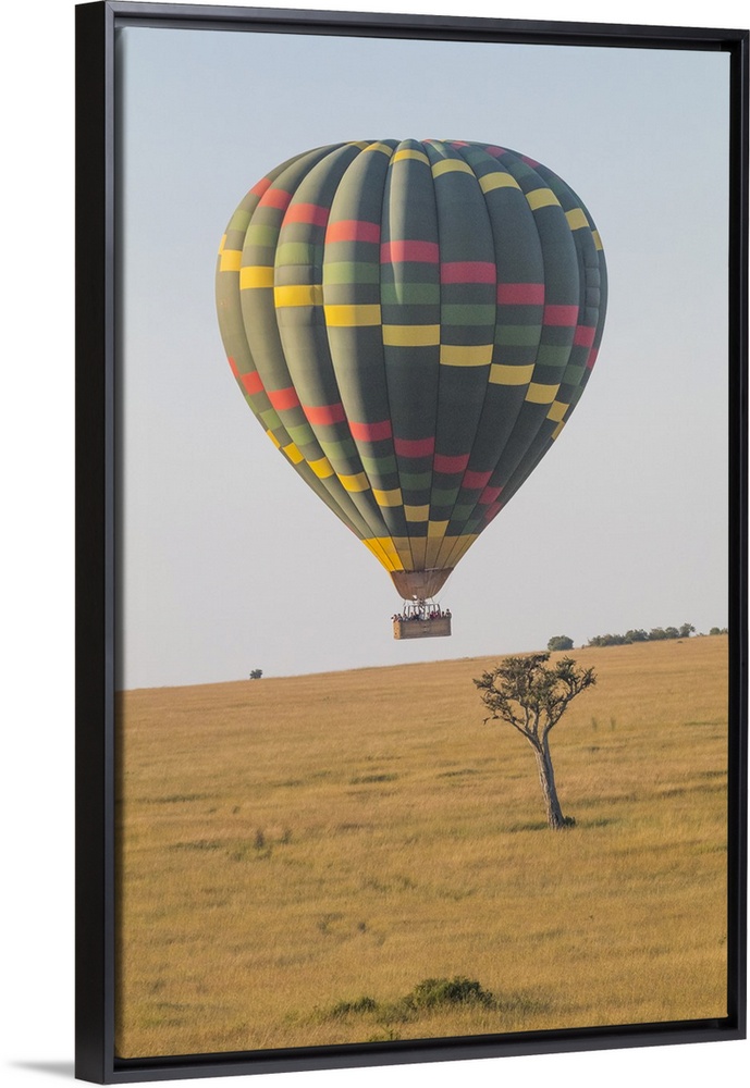 <p>Africa, Kenya, Masai Mara National Reserve. Hot air balloon over savannah.</p>