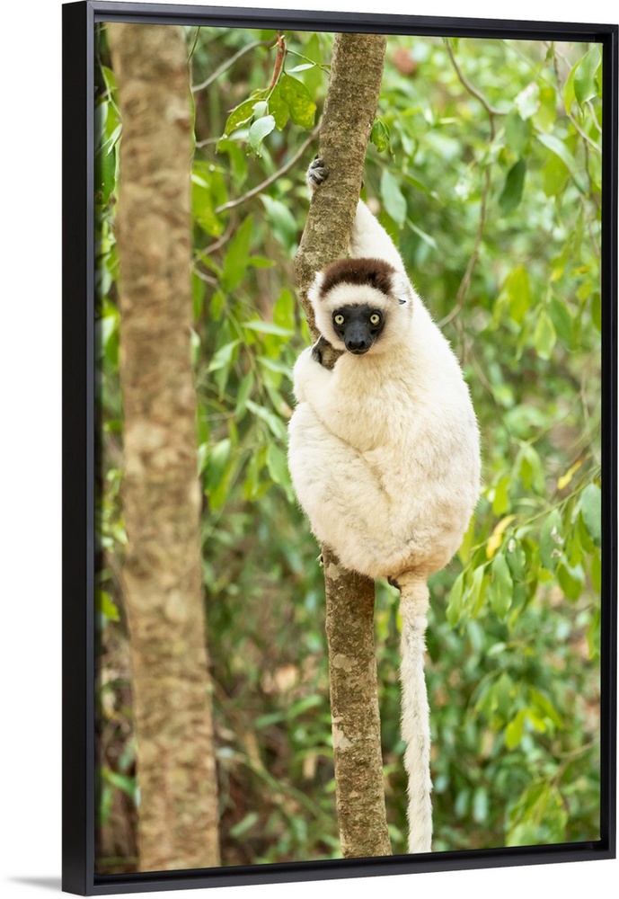 <p>Africa, Madagascar, Anosy, Berenty Reserve. Portrait of a Verreaux's sifaka in a tree.</p>