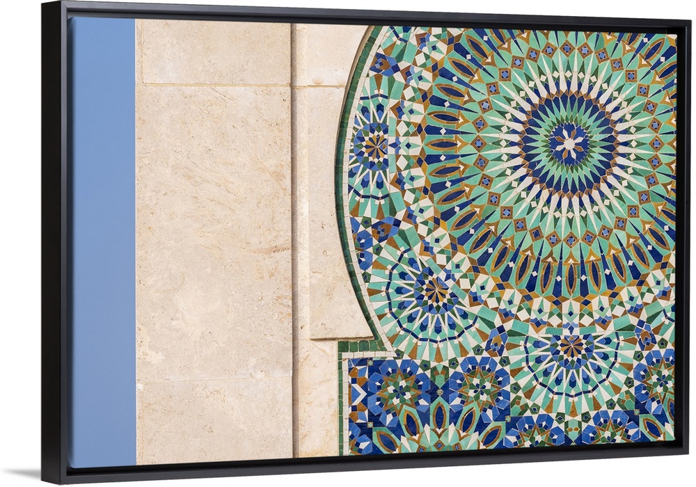 <p>Africa, Morocco, Casablanca. Close-up of tile designs on mosque exterior. Credit: Bill Young</p>