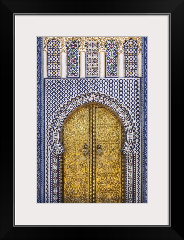 <p>Africa, Morocco, Fes. Detail of the King's Palace ornate doors.</p>