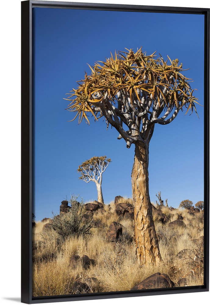 <p>Africa, Namibia, Keetmanshoop, Quiver Tree Forest, (Aloe dichotoma), Kokerbooms. Quiver trees among the rocks and grass.</p>