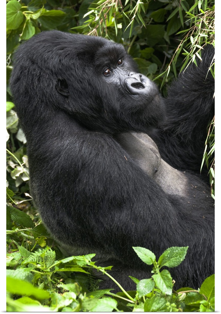 <p>Africa, Rwanda, Volcanoes National Park, mountain gorilla, Gorilla beringei beringei. Portrait of a silverback mountain gorilla.</p>