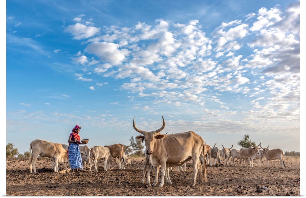 <p>Africa, Senegal. A Fulani Woman Milking The Zebus.</p>