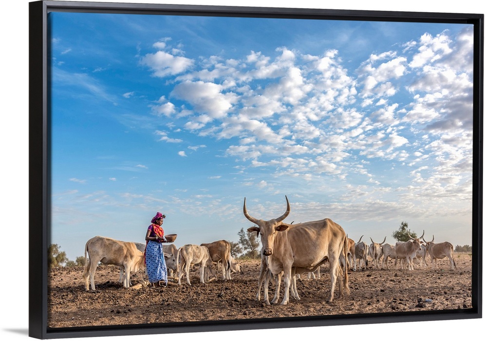 <p>Africa, Senegal. A Fulani Woman Milking The Zebus.</p>
