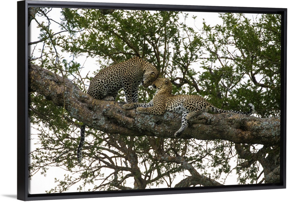 <p>Africa. Tanzania. African leopards (Panthera pardus) in a tree in Serengeti NP.</p>