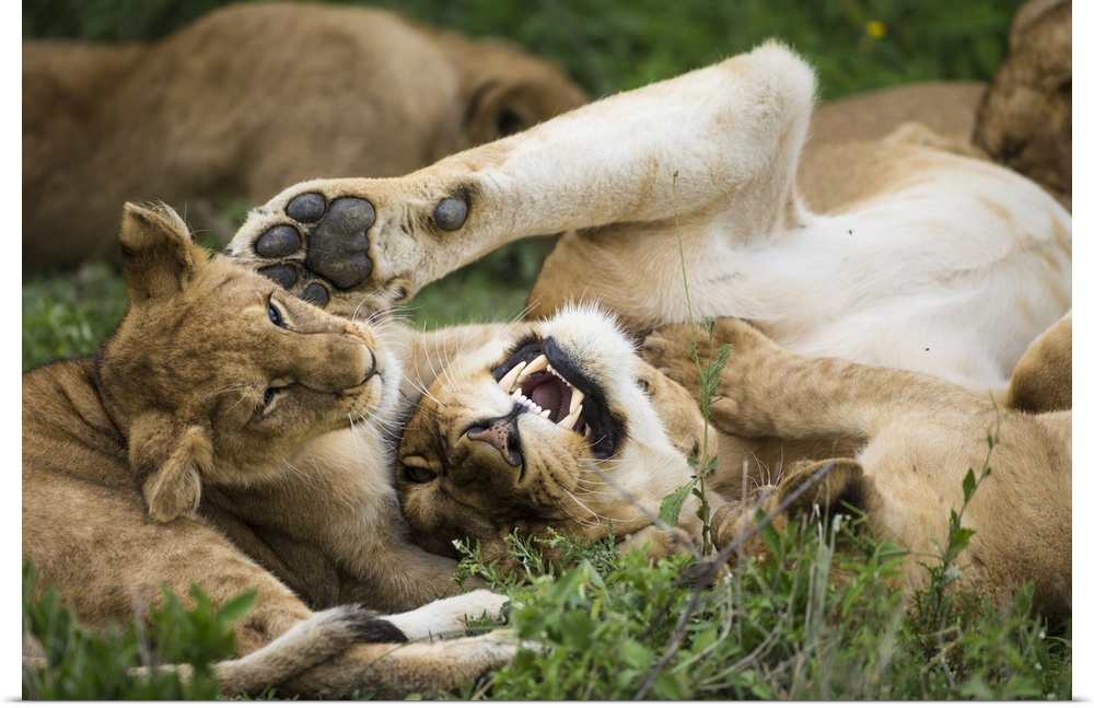 <p>Africa. Tanzania. African lions (Panthera leo) at Ndutu in Serengeti NP.</p>