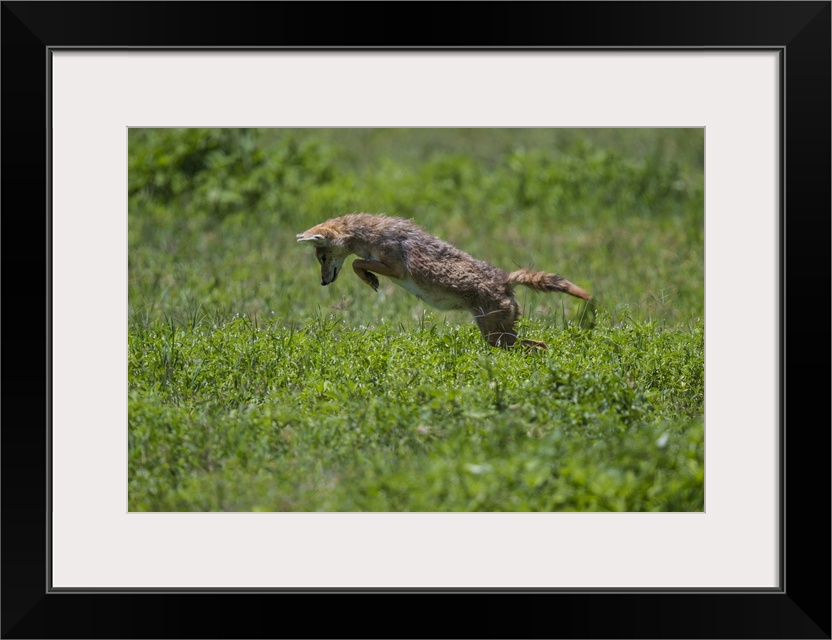 <p>Africa. Tanzania. Golden jackal (Canis aureus) hunting in Serengeti NP.</p>