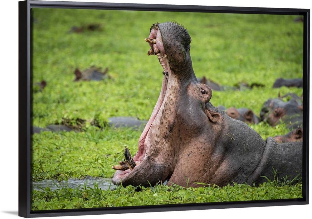 <p>Africa, Tanzania, Katavi National Park. hippo yawning.</p>