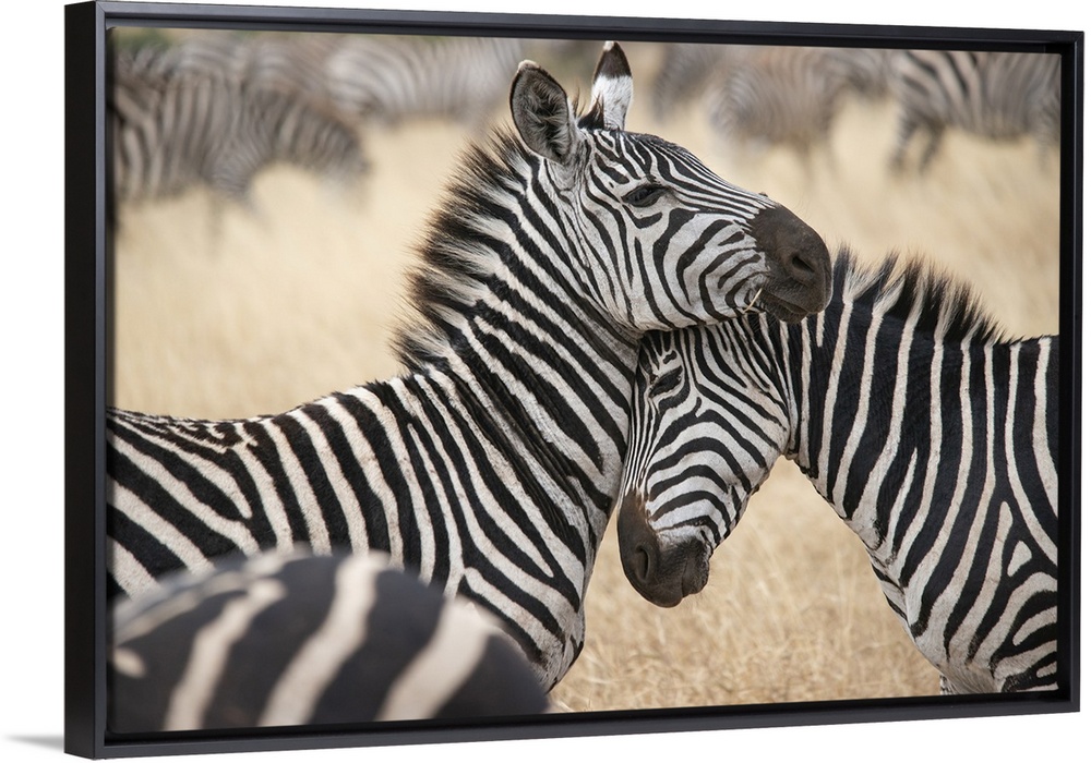 <p>Africa, Tanzania. Loving zebras nuzzle in the Serengeti. Africa, Tanzania.</p>