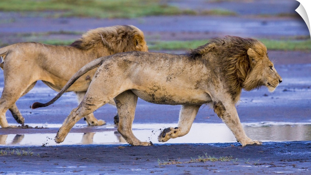<p>Africa. Tanzania. Male African lions (Panthera leo) at Ndutu in Serengeti NP.</p>