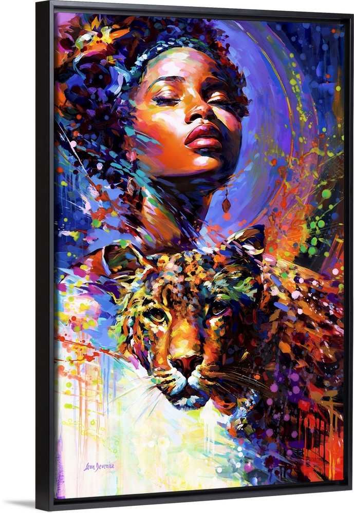 Art Eclectic Contemporary Art Figurative Leon Devenice Painting People Figurative Purple Wall Art Wildlife Leopard