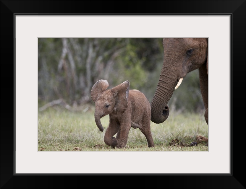 <p>African Elephant (Loxodonta africana) baby and mother, Addo Elephant National Park, South Africa, Africa</p>