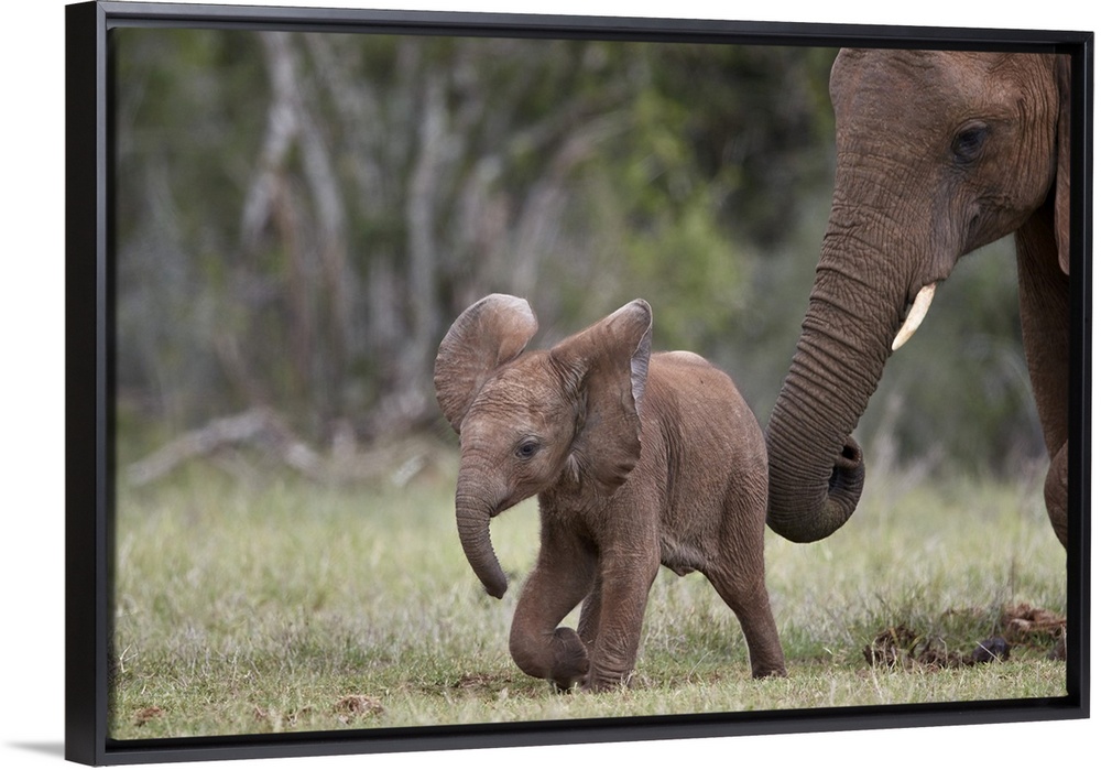 <p>African Elephant (Loxodonta africana) baby and mother, Addo Elephant National Park, South Africa, Africa</p>