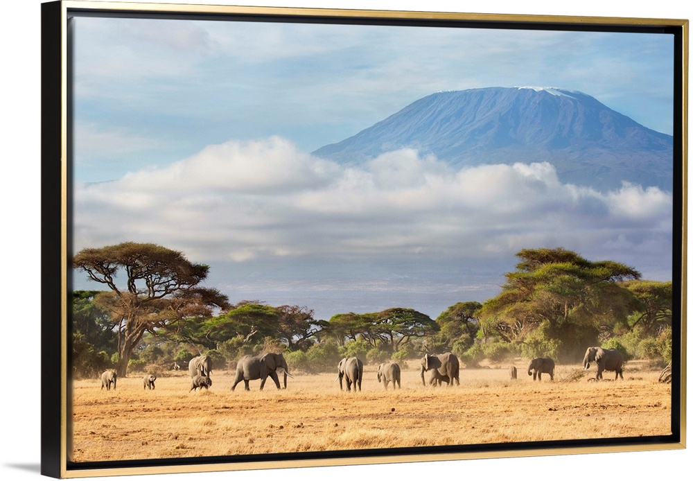 <p>African Elephant (Loxodonta africana) herd in savanna, Mount Kilimanjaro, Amboseli National Park, Kenya.</p>