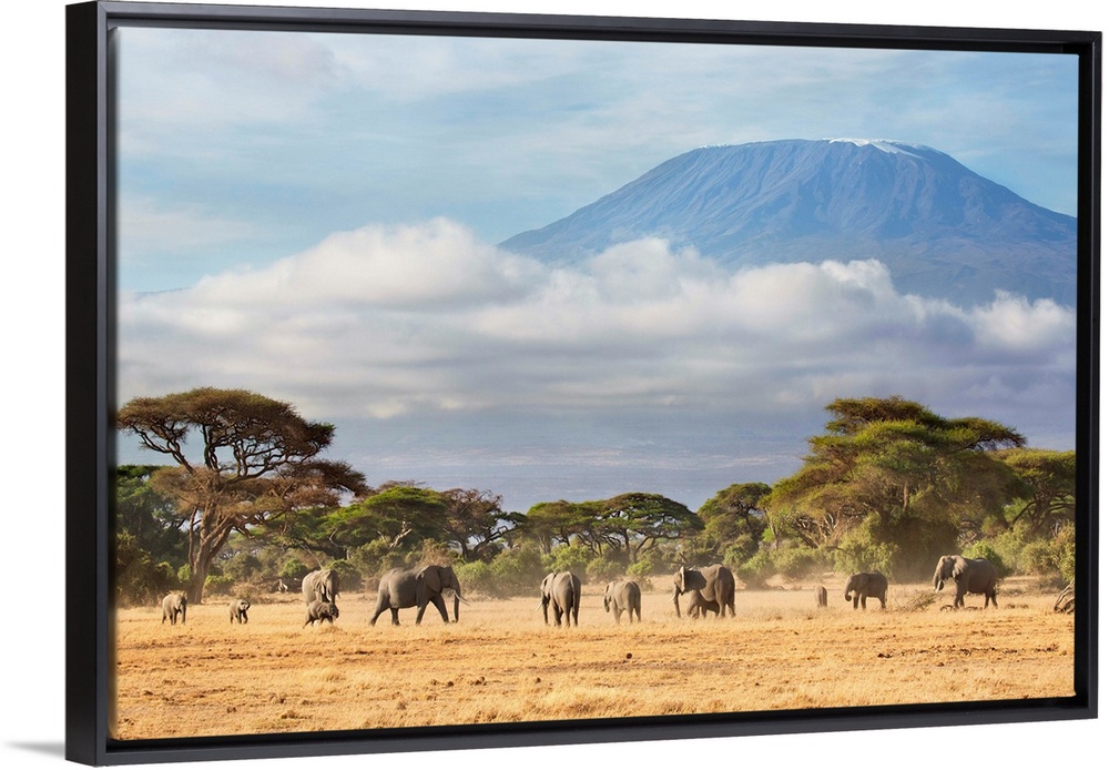 <p>African Elephant (Loxodonta africana) herd in savanna, Mount Kilimanjaro, Amboseli National Park, Kenya.</p>
