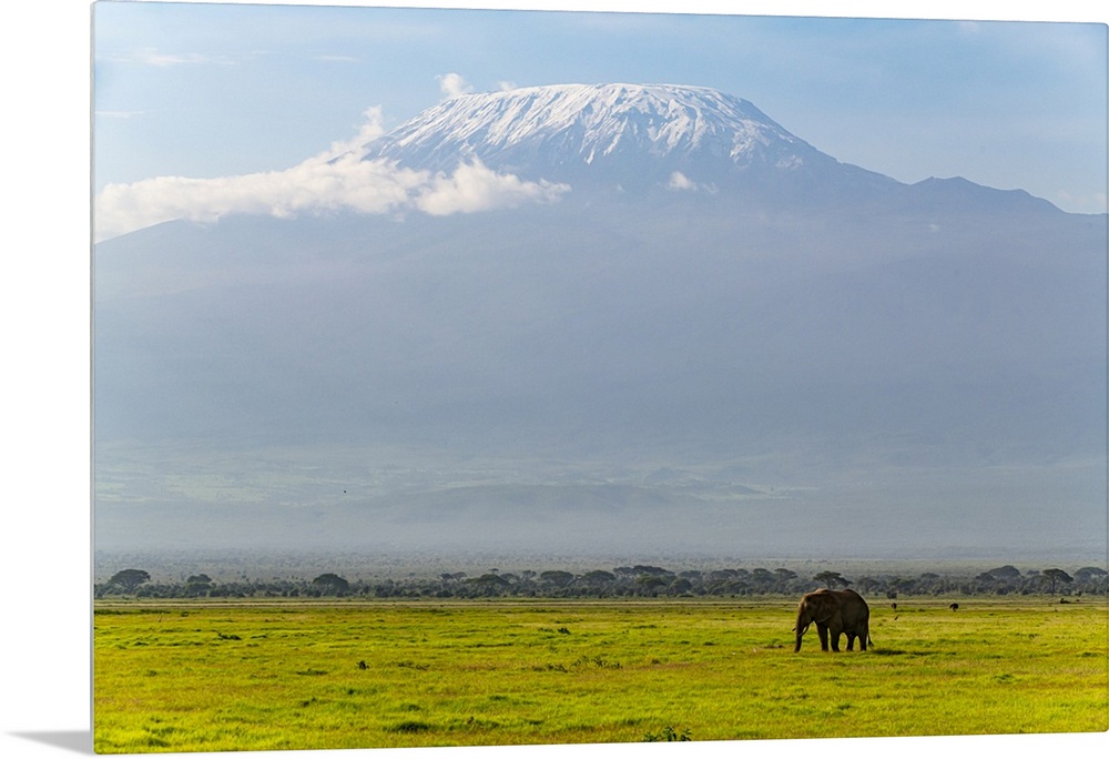 <p>African elephant (Loxodonta) with Mount Kilimanjaro in the background, Amboseli National Park, Kenya, East Africa, Africa</p>