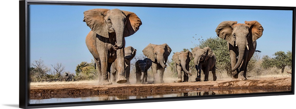 <p>African Elephants running to waterhole, Mashatu Game Reserve, Botswana.</p>