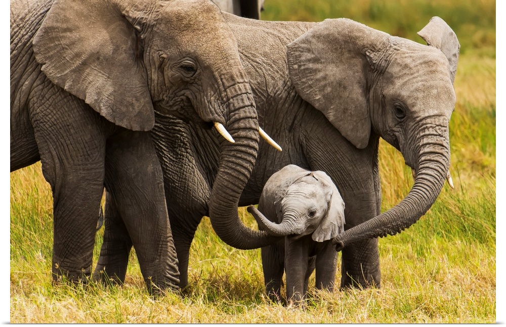 <p>African elephants walking with their young on the serengeti; Tanzania</p>