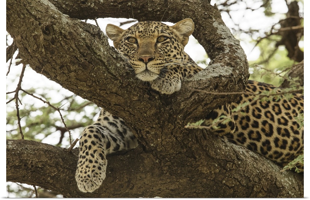 <p>African leopard in tree, Panthera pardus Pardus, Serengeti national park, Tanzania, Africa.</p>
