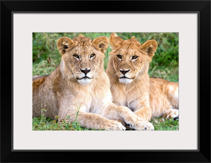 <p>African Lion (Panthera leo) juvenile males, Serengeti National Park, Tanzania.</p>