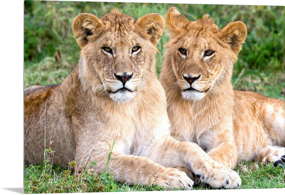 <p>African Lion (Panthera leo) juvenile males, Serengeti National Park, Tanzania.</p>