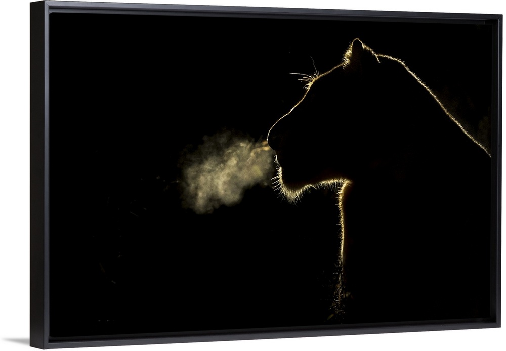 <p>African Lion (Panthera leo) lioness breathing at night, Sabi Sands Game Reserve, South Africa.</p>