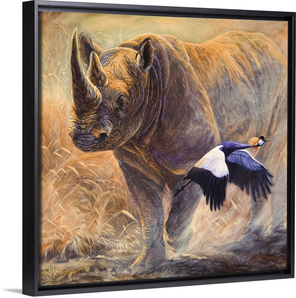 <p>rhinosaurus running and bird fleeing</p>