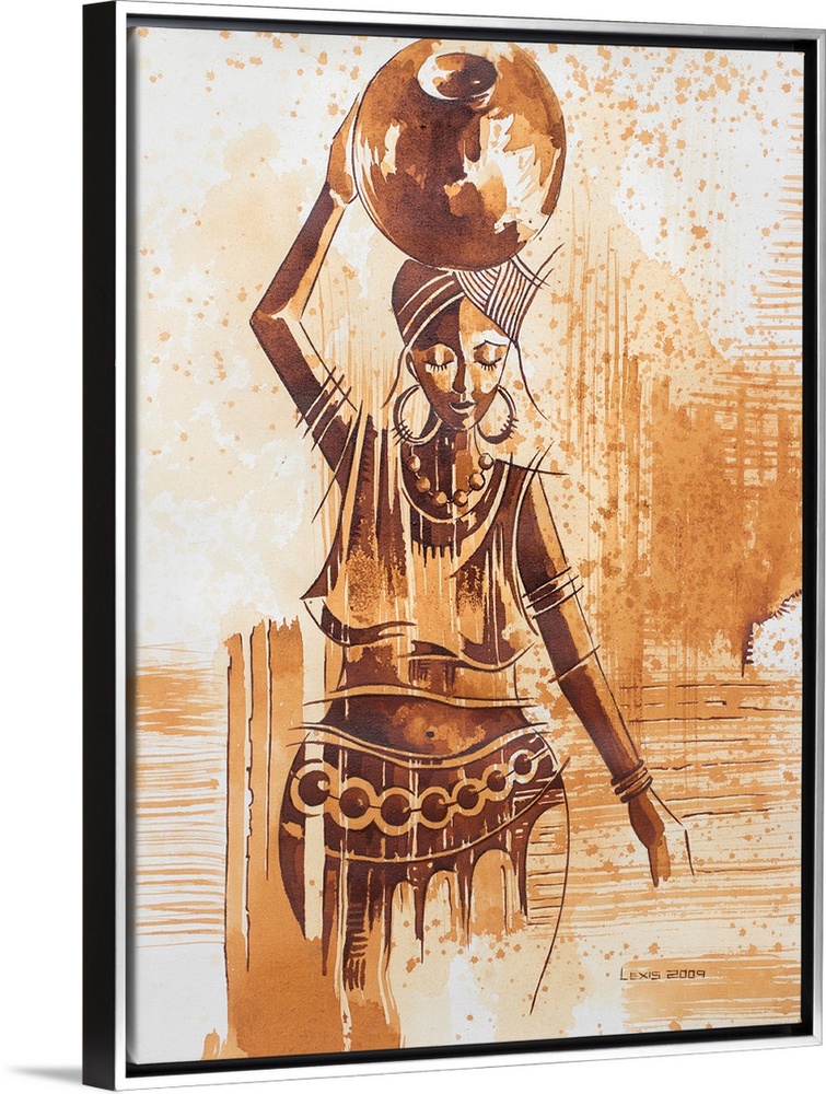 <p>Like African women, never forget to wear a smile as you carry out your duties, for you may never know its impact on people's lives, advices Alex Mensah. He masterfully captures both her inner and outer beauty in this expressive composition. To paint her portrait he prepares aciduro by soaking rusted nails. The resulting tinted liquid is very similar to watercolors.</p>